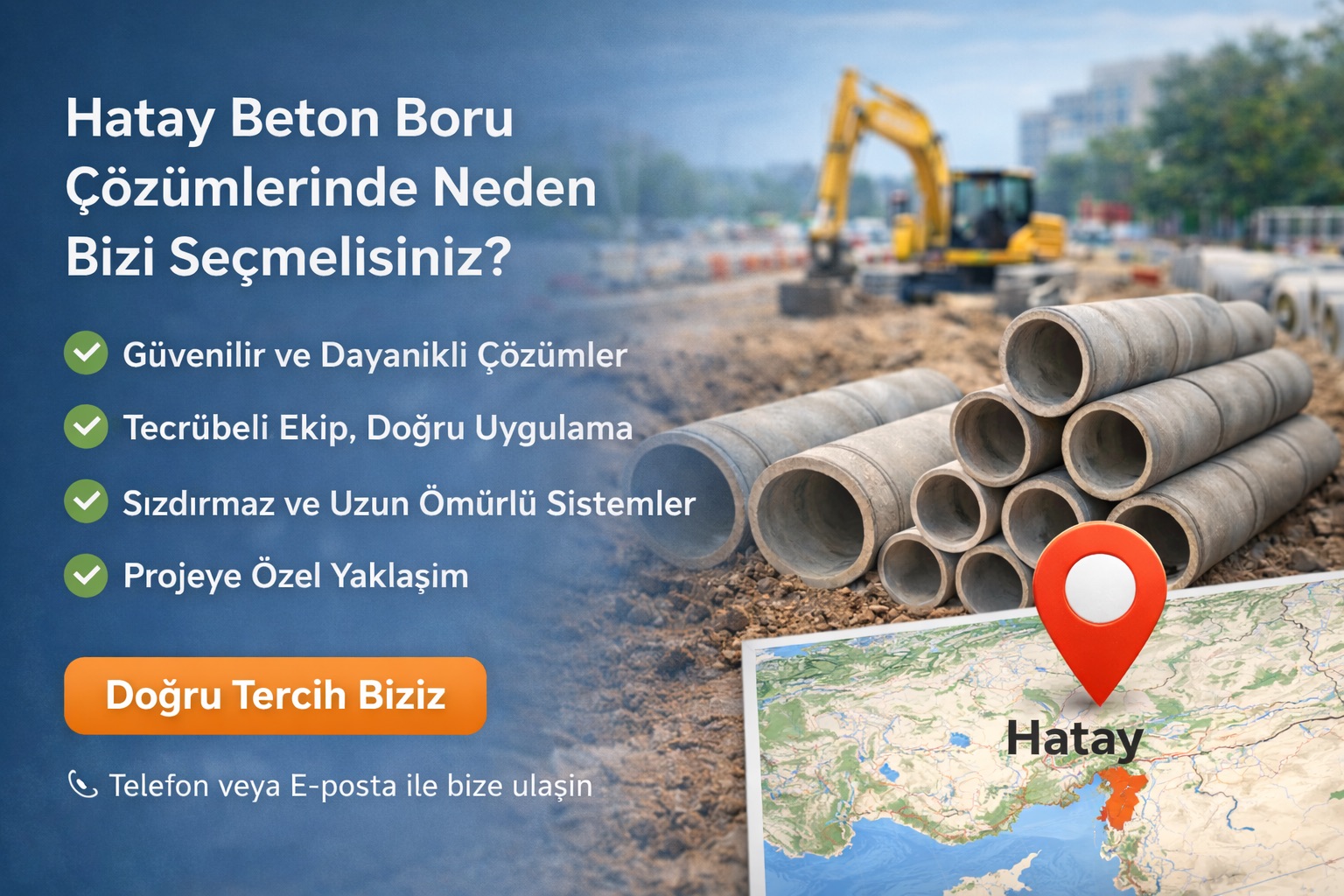 Altyapı projelerinde en kritik konu, kullanılan malzemenin kalitesi ve uygulamanın güvenilirliğidir. Hatay beton boru çözümlerinde bizi tercih etmenizin nedeni; sağlamlık, tecrübe ve mühendislik yaklaşımını bir arada sunmamızdır.